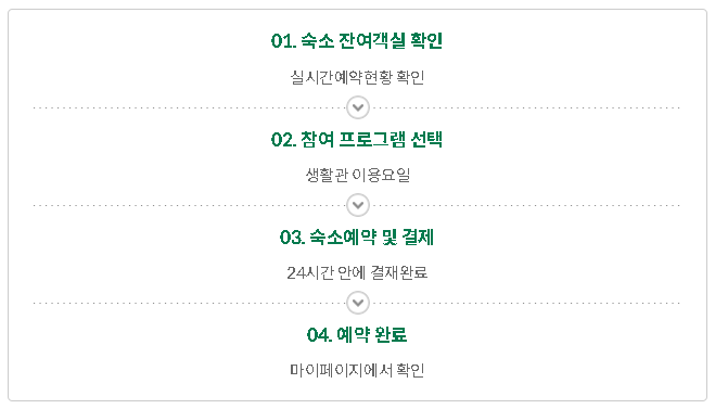 개인예약방법 - 숙소 예약시 생태관련 프로그램을 선택하여 교육생활관 예약 |