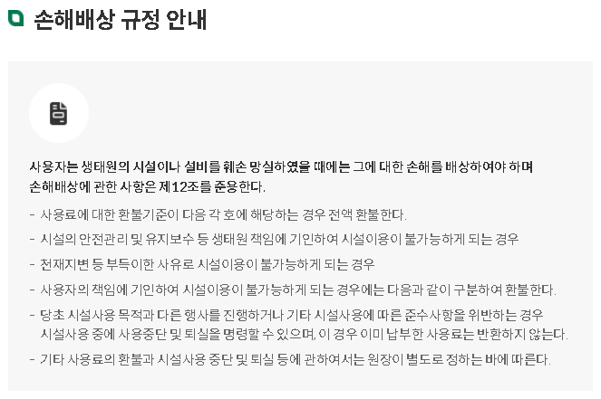| 단체고객 - 일일생태체험, 생태진로체험 등을 예약한 단체 - 원 내에 생태 및 환경 분야 교육 강좌, 세미나, 학술회의, 생태관광 등의 활동을 하려는 단체 |
